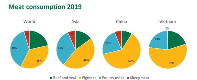 根据联合国粮农组织2019年的统计,猪肉在中国的消费量占到了肉类总消费量的62%