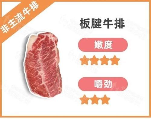 板筋瘦肉多,脂肪少,肉质细嫩,口感接近菲力。更适合不喜欢咀嚼或不方便咀嚼的人。