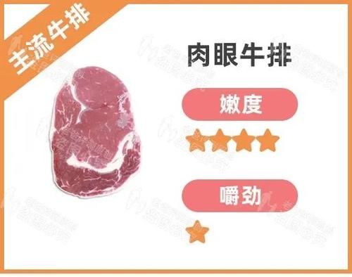 生眼牛排筋少,肉质更细,脂肪稍多,口感细嫩,香甜多汁,适合大多数人。尤其对于刚接触牛排或不常吃牛排的人来说,是个不错的选择。