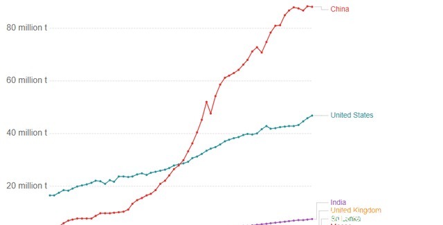 1961-2018年,全球主要国家肉类总产量的变化趋势,数据来源:联合国粮农组织